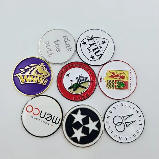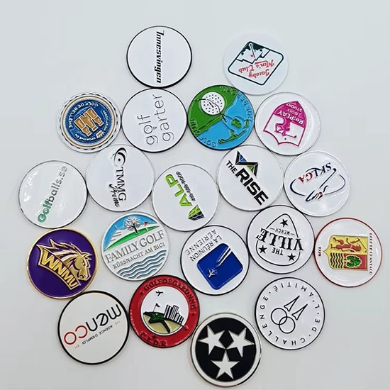 Custom Clover With Glitter logo Golf Hard Enamel Golf Ball Marker Wholesale Custom Round Metal Letter Ball Marker